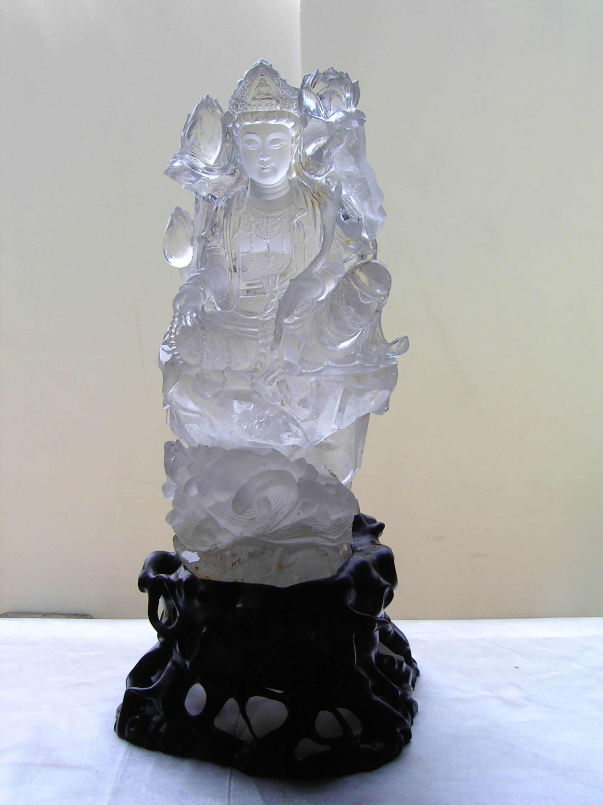 晶瑩剔透,純潔光亮。瑩光美麗,是天然水晶特性不同其他玉石材料,種類可劃分為無色水晶,有色水晶如白晶、茶晶、紫晶、黃晶、發晶、鈦晶、煙晶、芙蓉晶等多種類。世界各地幾乎均有水晶廣泛產出、但真正純凈通透的水晶卻稀少,雕刻佛菩薩像的優良晶礦更是難取得。