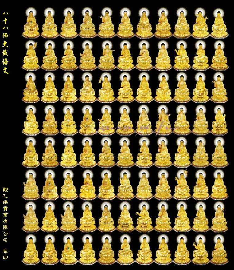 八十八佛寶像,仟萬鉅資造價,佛教史上第一套塑像造金銅像, 現供奉靈山寶地臺灣埔里正德大佛山,歡迎十方大德朝山瞻仰禮拜。